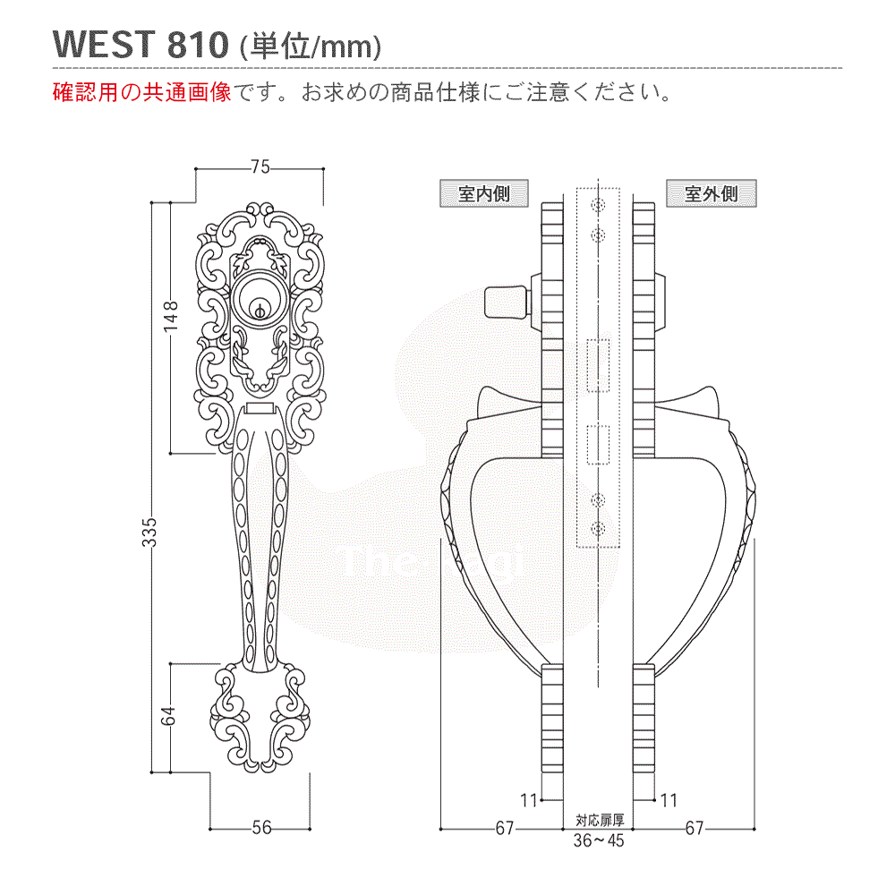 商品概要 部品情報 WEST 810-C6605D-GO 色仕上げ 古色ゴールド(GO) キー仕様 WEST916 ディンプルキー 付属キー本数 3本 対応扉厚[DT] 36mm~45mm バックセット[BS] 58mm フロントサイズ (H)208×(W)25mm フロントビスピッチ 187mm 左右勝手 左右兼用 商品内容参考 サムラッチ錠, 錠ケース, ストライク, 留めネジ メンテナンス 潤滑剤などお役立ちグッズはこちら 関連商品 (WEST810 古色ブロンズ) [重要なお知らせ] 当店では工事メンテナンスを主目的とした商品が多いため一般的な市販品と異なり、その性質上、パッケージや内容物に小傷や汚れが多少ある場合や包装が不一定の場合などございます。